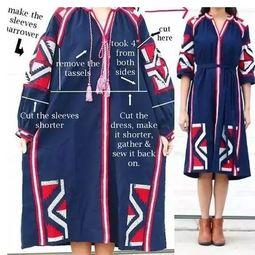 看看这张图片,一件普通的衬衫经过拼接,变成了一个时尚的连衣裙。设计师在衬衫的领口、袖口和裙摆处加入了不同材质的布料,使得整个裙子看起来既时尚又具有层次感。